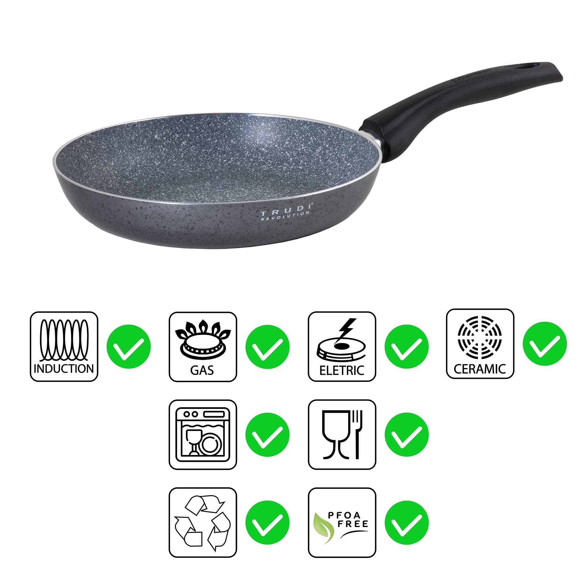 PADELLA 1MANICO 20 CM,ADATTA A TUTTI I PIANI DI COTTURA E AD INDUZIONE E RIVESTITA CON PARTICELLE DI PIETRA ANCORA PIU’ RESISTENTE