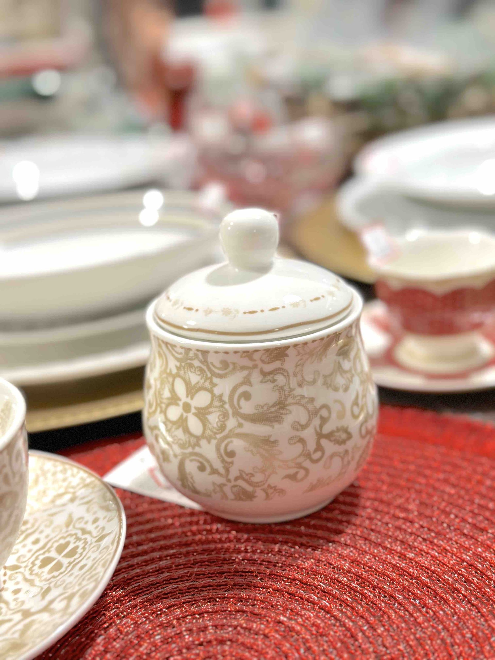 BRANDANI ZUCCHERIERA IN PORCELLANA CON DECORAZIONI COLORE ORO