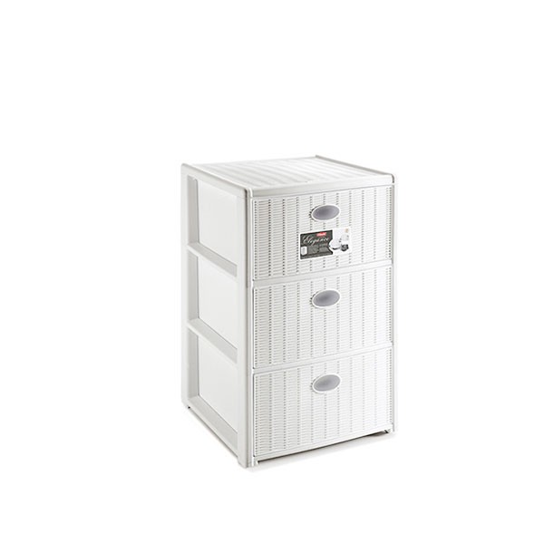 Cassettiera composta da 3 cassetti materiale plastica in finitura midollino.