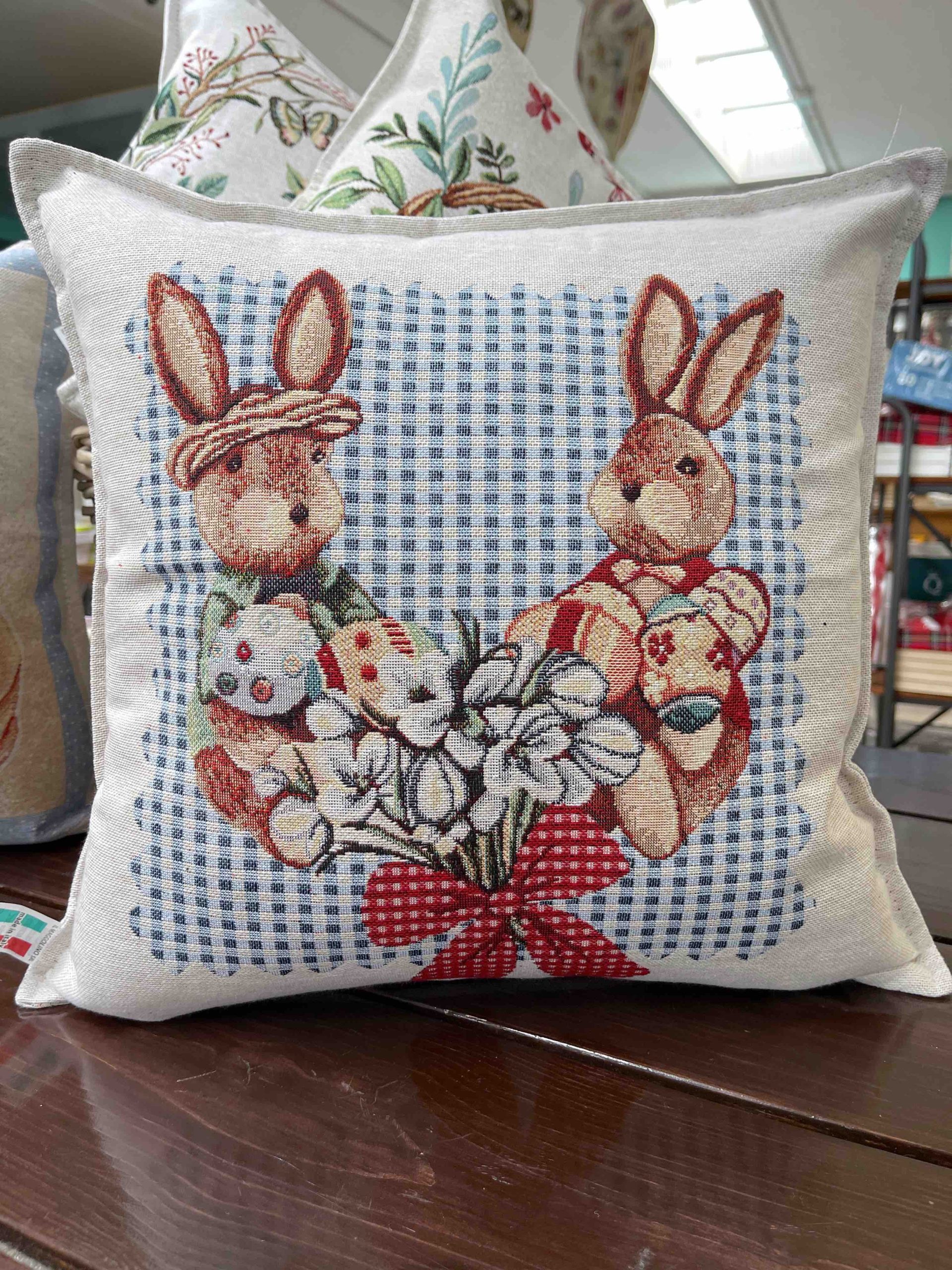 IDEALE COME REGALO O DA UTILIZZARE NEL PERIODO PRIMAVERA/PASQUA, PROPONIAMO SIMPATICA FODERA CUSCINO IN GOBELIN CON STAMPA . MISURA 40X40 CM