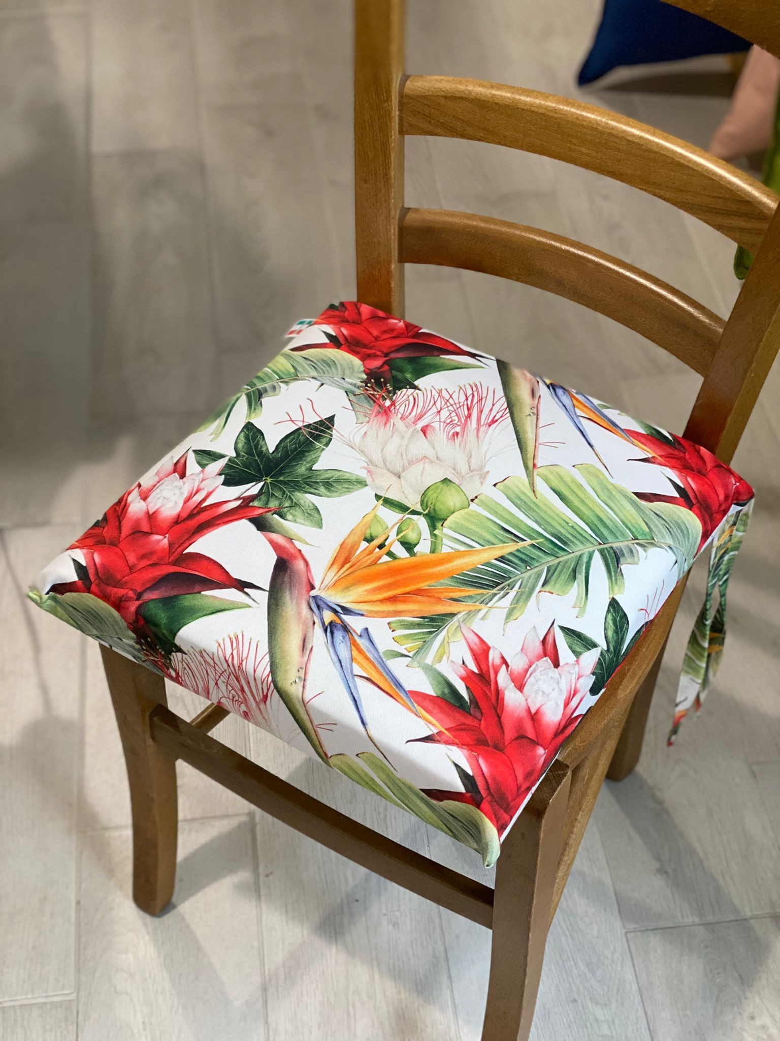 CUSCINO SEDIA CON CERNIERA SFODERABILE IN COTONE STAMPA DIGITALE E CON LACCI