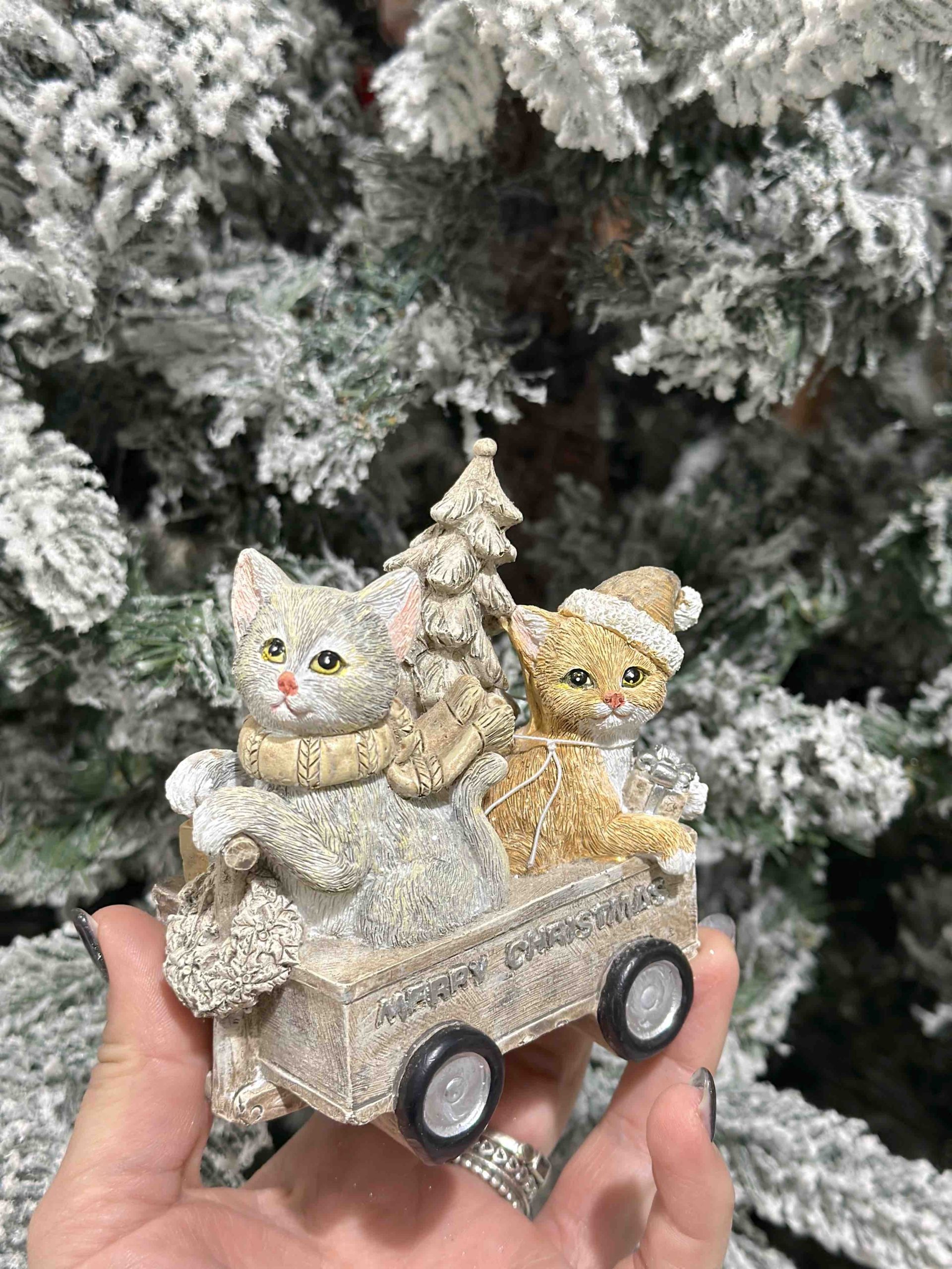 IDEALE COME REGALO O COME DECORAZIONE NATALIZIA PER LE VOSTRE CASE, PROPONIAMO BELLISSIMO CARRETTO CON GATTINI A TEMA NATALE. MISURA 11x6xh11cm