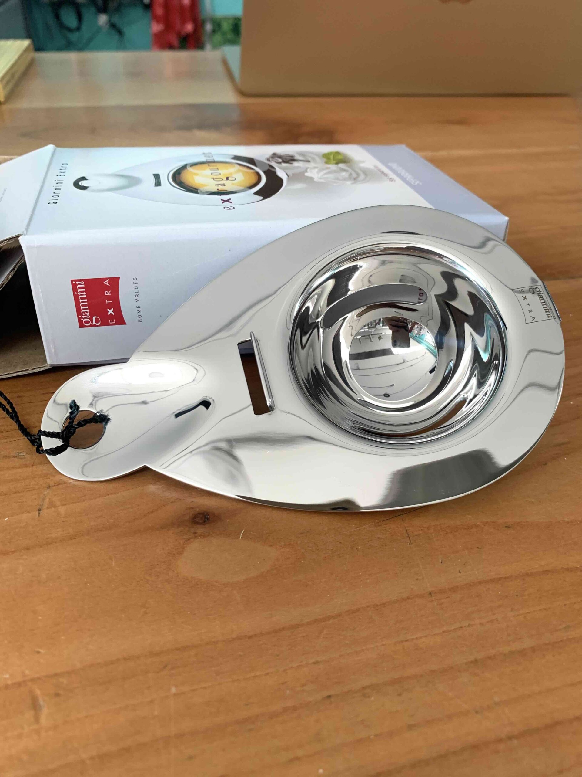 IDEALE PER SEPARARE IL TOURLO DALL’ALBUME, PROPONIAMO BELLISSIMO SEPARAUOVO IN ACCIAIO INOX MISURA 13,5X8X3 CM. FIRMATO GIANNINI