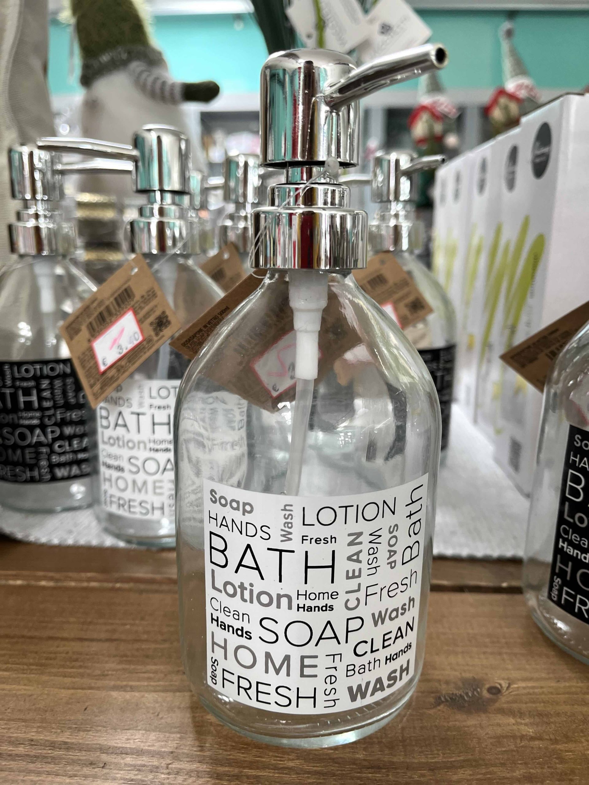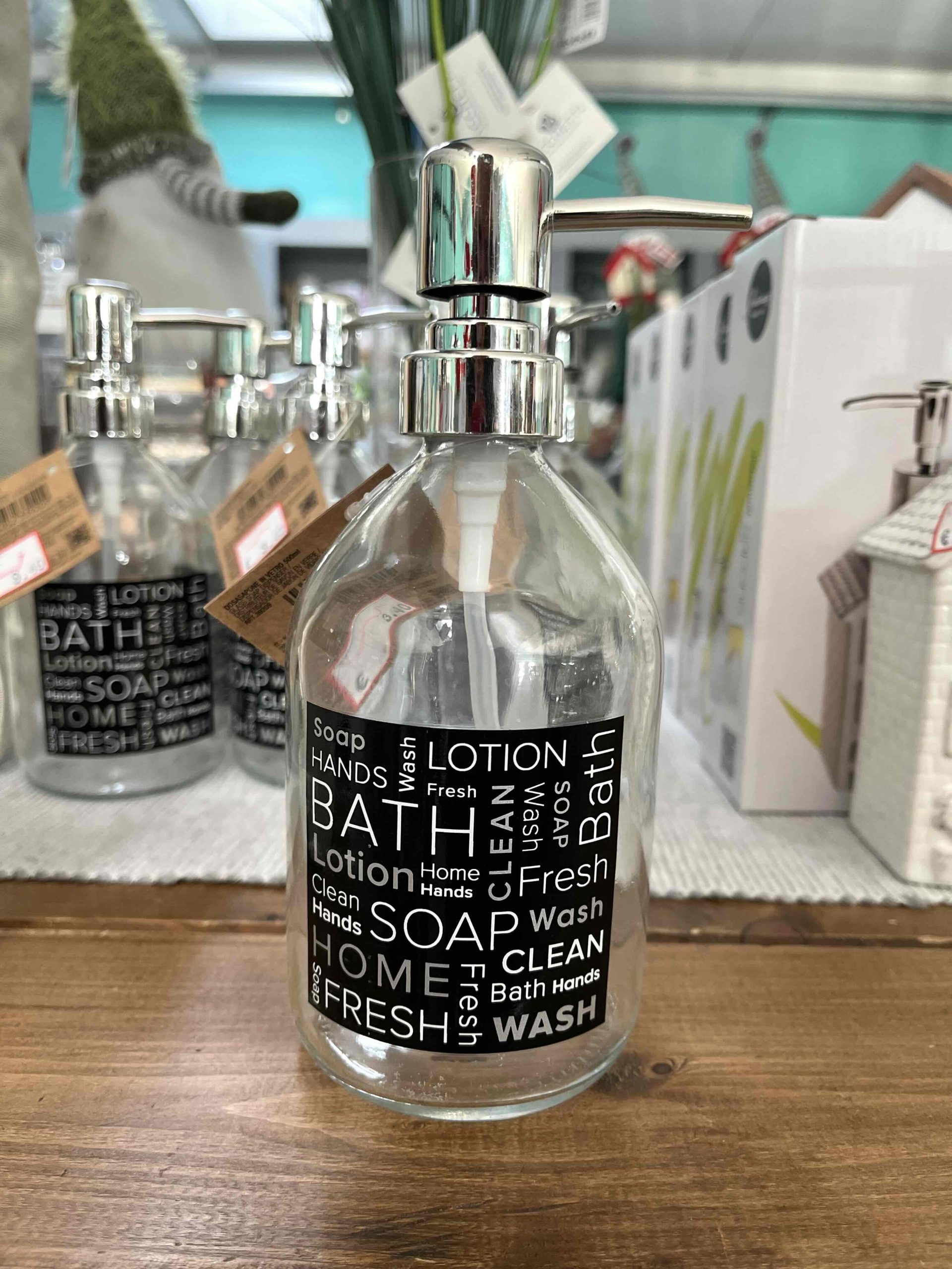DOSAPONE IN VETRO CON BANDA CON SCRITTE DISPONIBILE IN DUE COLORI: BIANCO O NERO