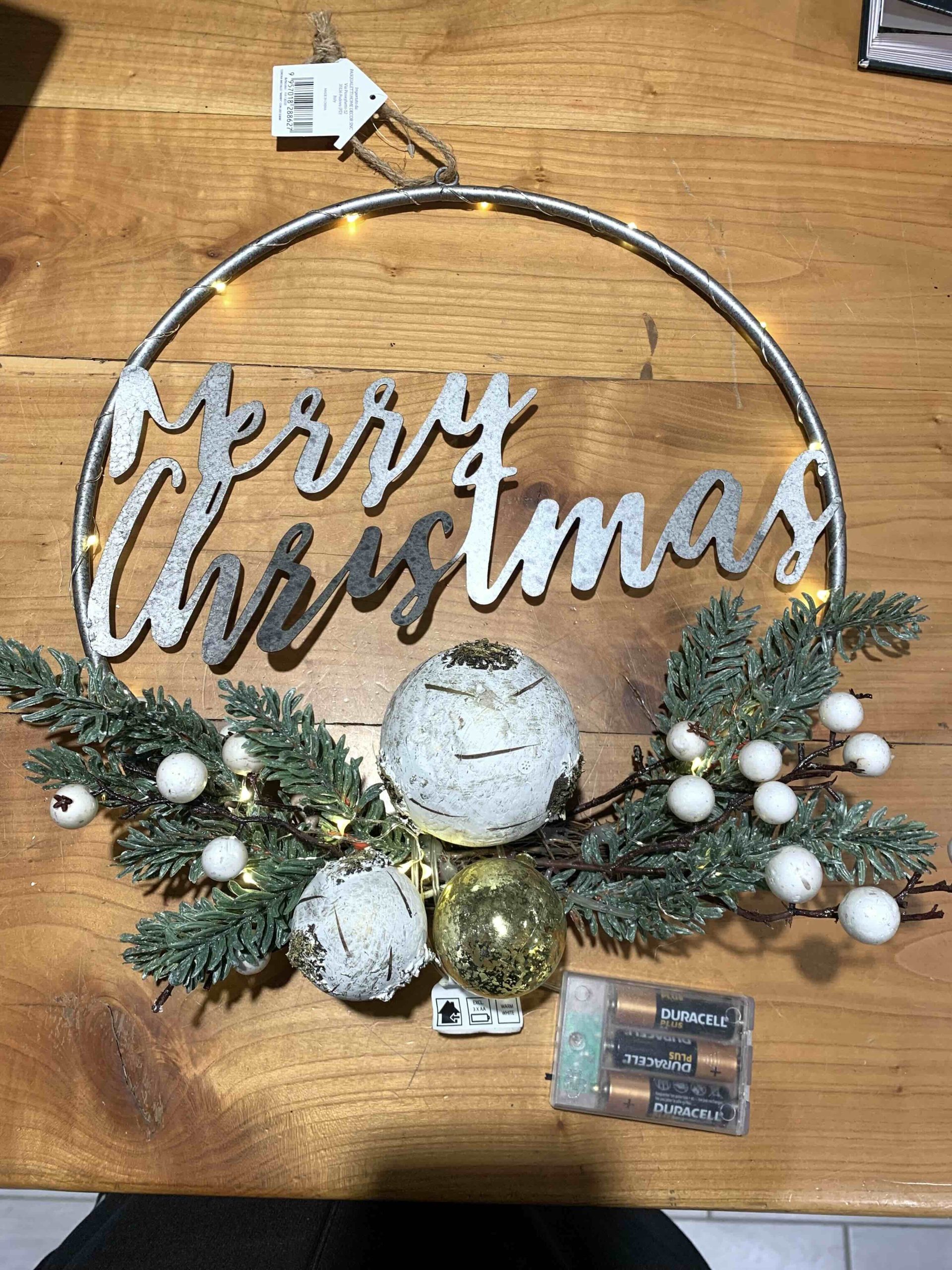 PER RISALTARE LA VOSTRA PORTA D’INGRESSO NEL PERIODO NATALIZIO, PROPONIAMO BELLISSIMA GHIRLANDA IN FERRO CON DECORAZIONI E LED