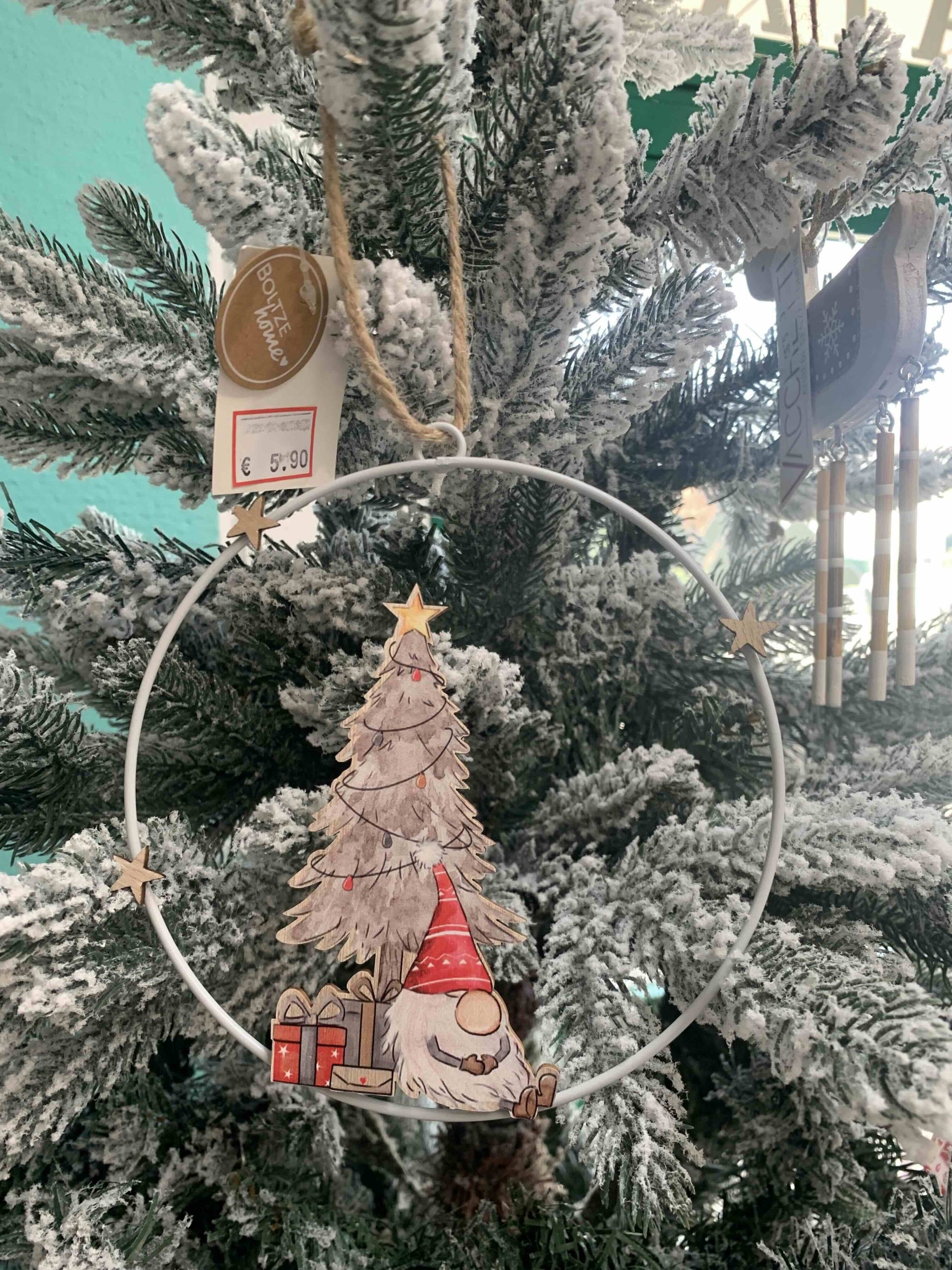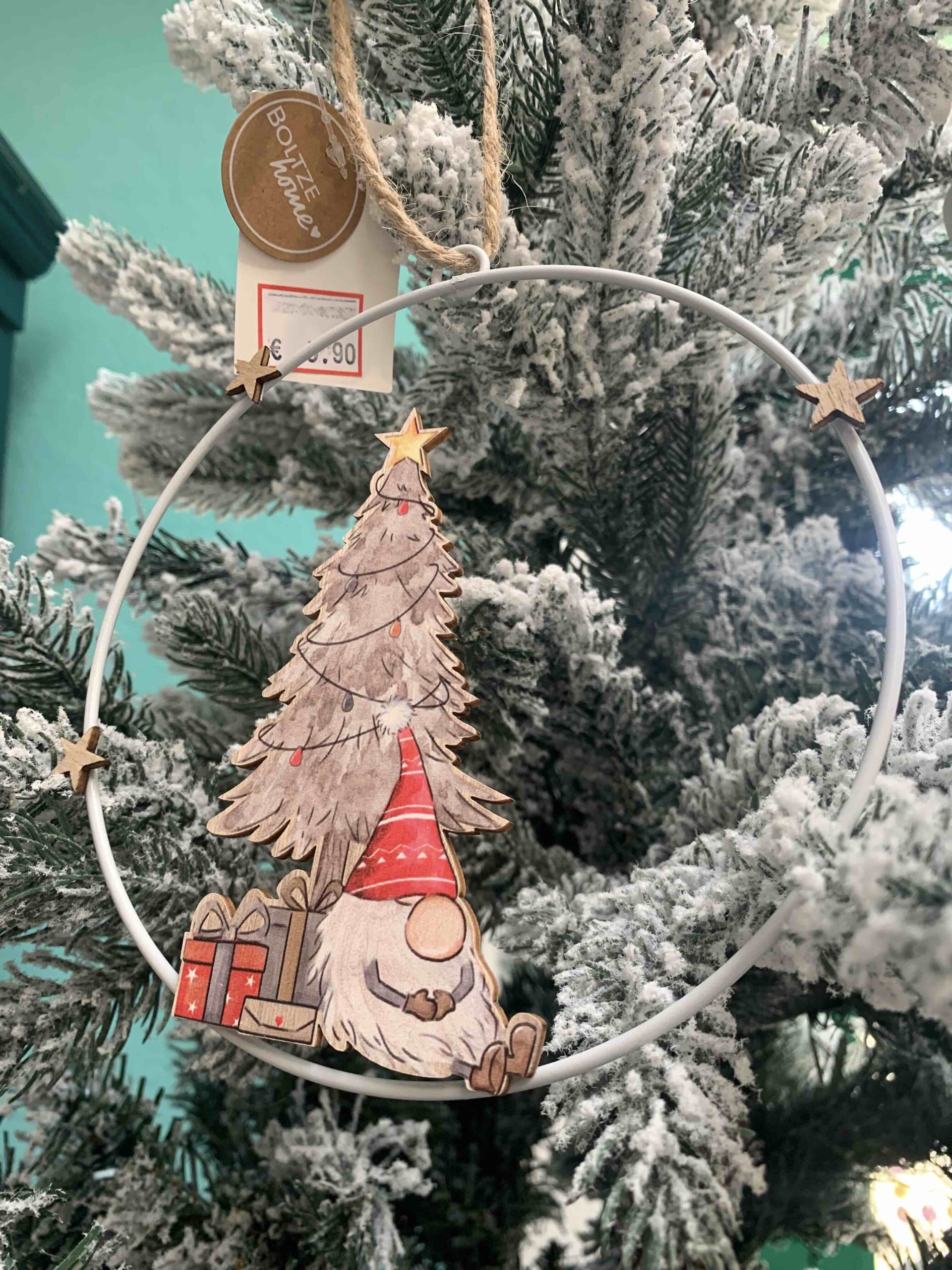IDEALE DA APPENDERE ALLA PORTA O SULL’ALBERO DI NATALE, PROPONIAMO GHIRLANDA IN FERRO CON GNOMO IN LEGNO. DIAMETRO CERCHIO 15 CM