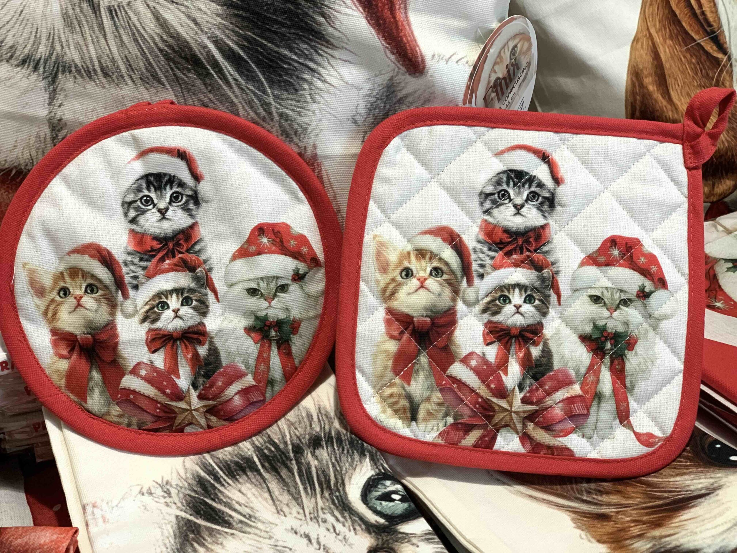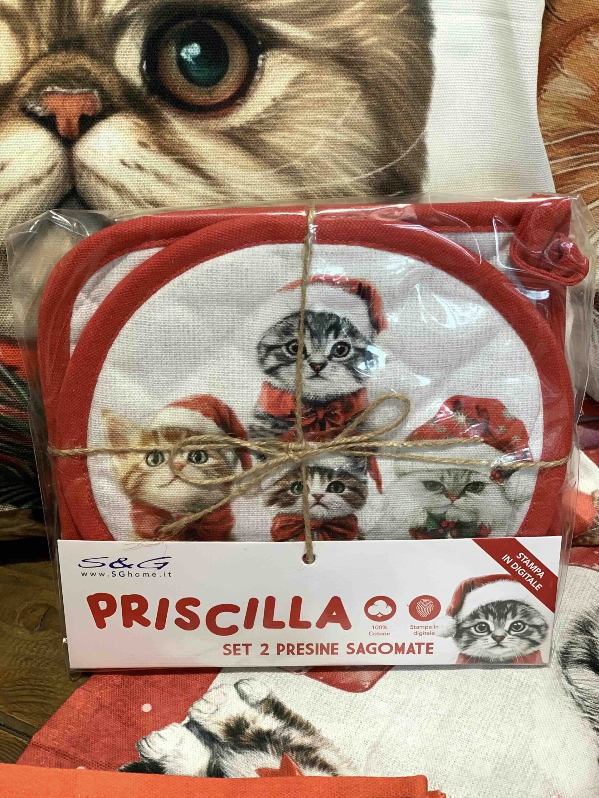 IDEALE PER DARE UN TOCCO NATALIZIO ALLE VOSTRE CUCINE O COME IDEA REGALO, PROPORINIAMO BELLISSIMO SET COMPOSTO DA 2 PRESINE IN COTONE