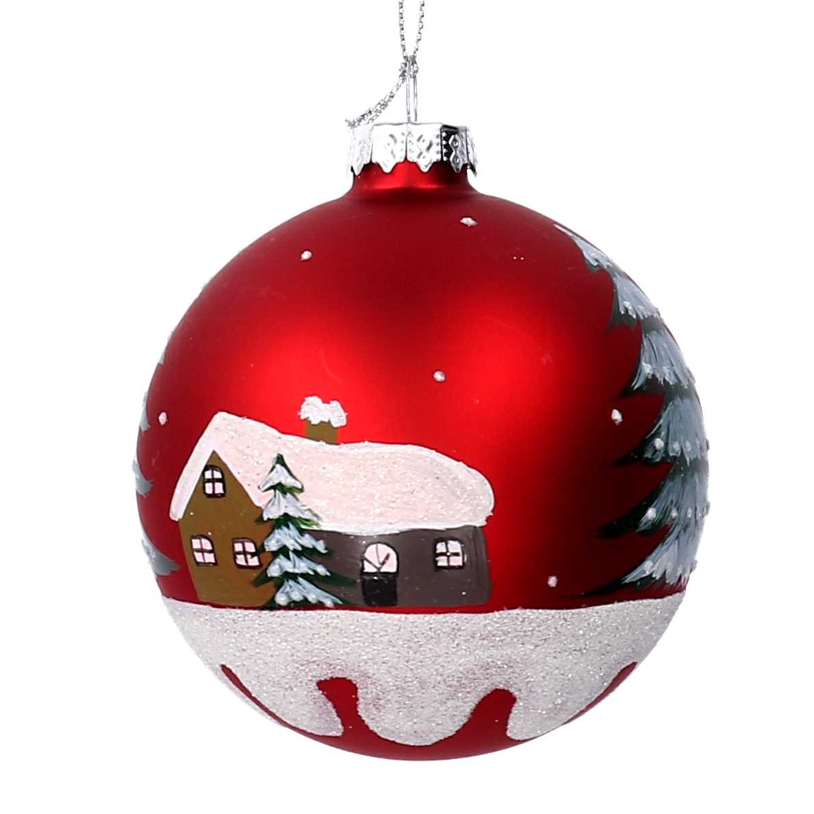 SFERA IN VETRO DA APPENDERE ROSSA CON DISEGNO PAESAGGIO