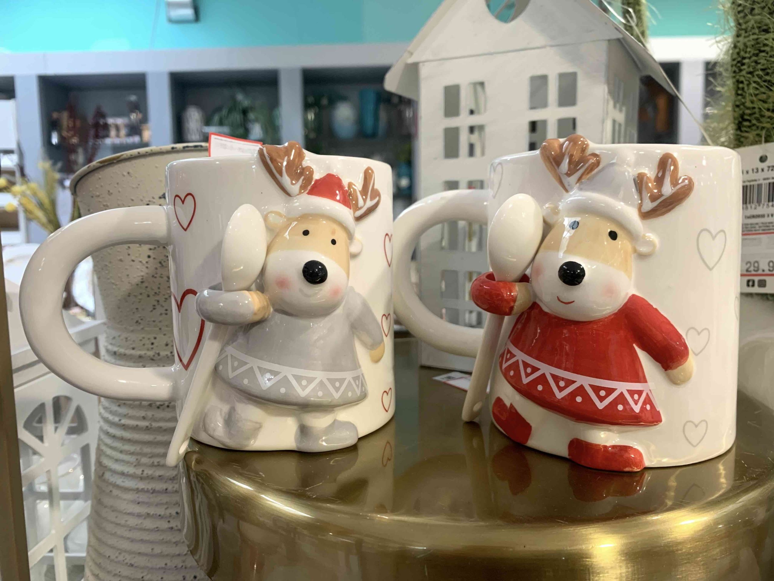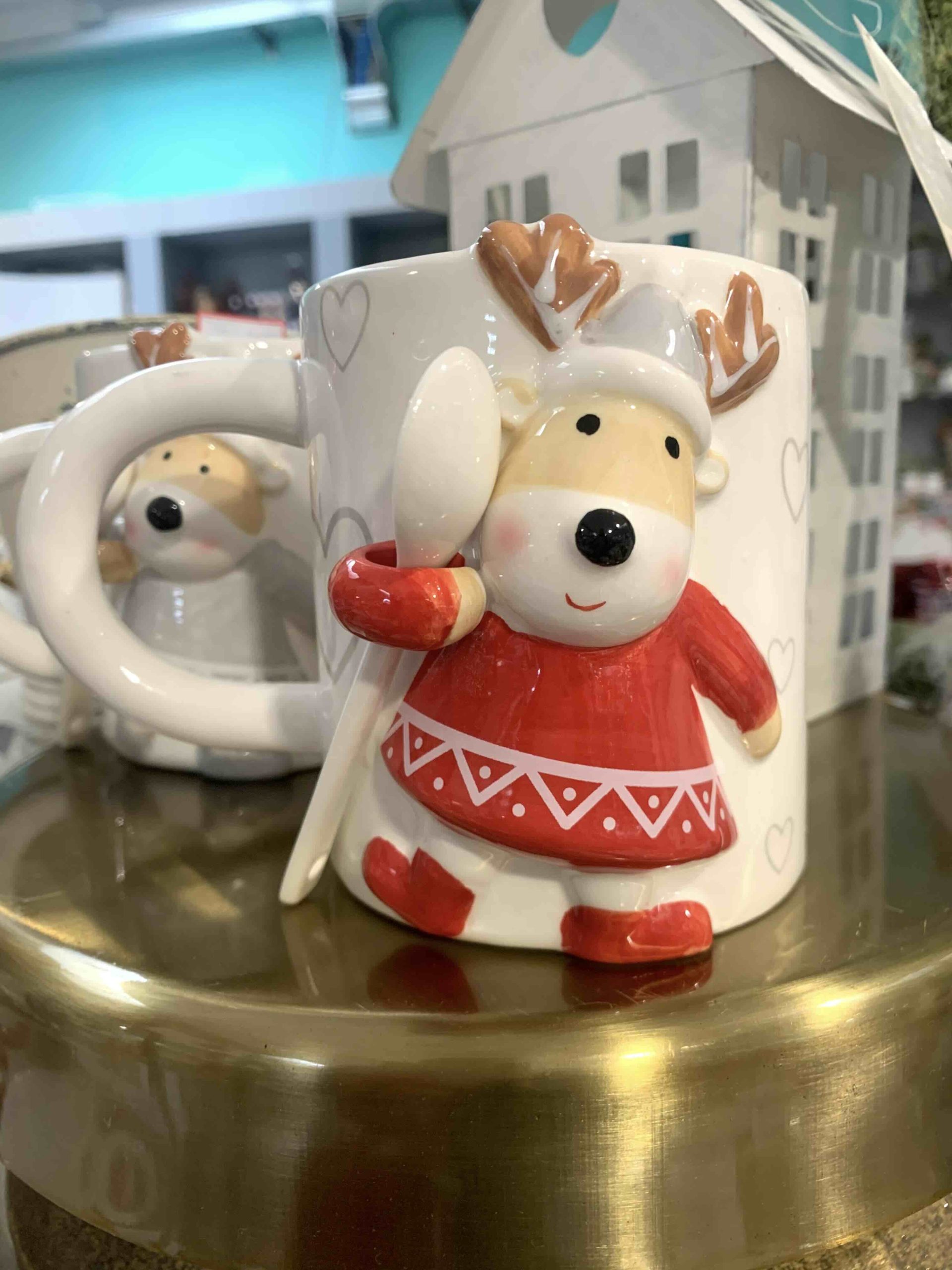COME REGALO NATALIZIO, PROPONIAMO BELLISSIMA TAZZA IN CERAMICA BIANCA CON DISEGNO IN RILIEVO RENNA CON CUCCHIAINO INCLUSO SEMPRE IN PORCELLANA