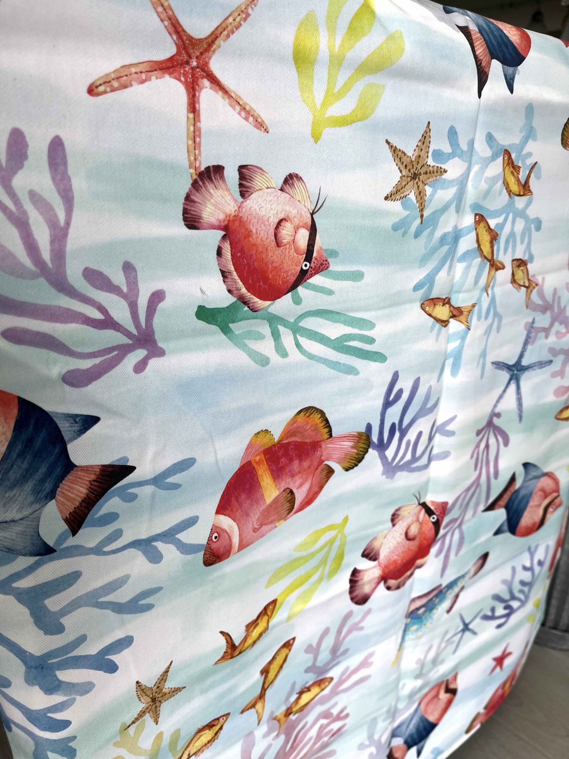 IDEALE PER DARE UN TOCCO DI COLORE ALLE VOSTRE TAVOLE NEL PERIODO ESTIVO, PROPONIAMO BELLISSIMA TOVAGLIA IN COTONE TEMA MARE IN COTONE