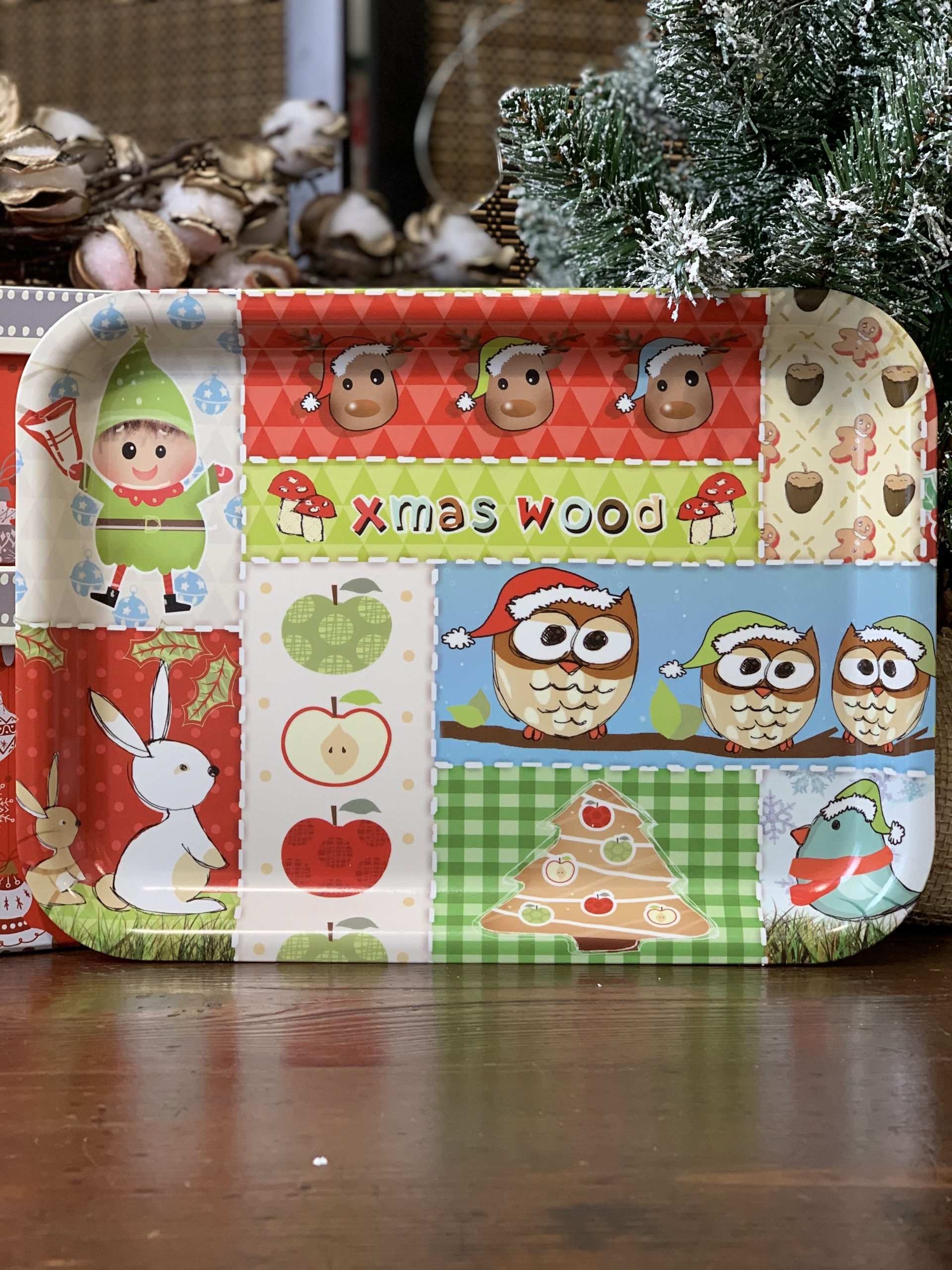 Vassoio Natalizio in Melamina decoro gufo, Misura 31x23cm