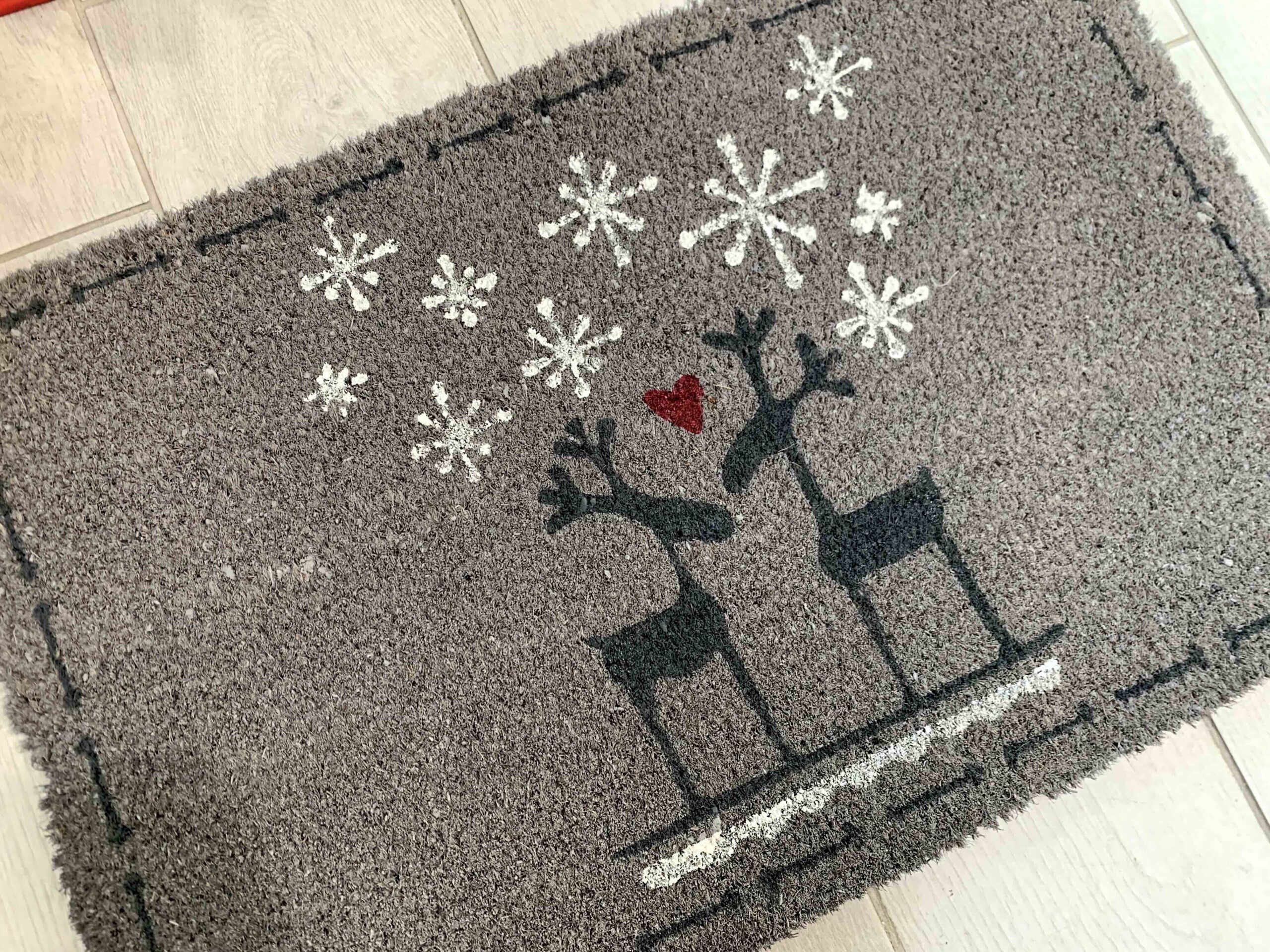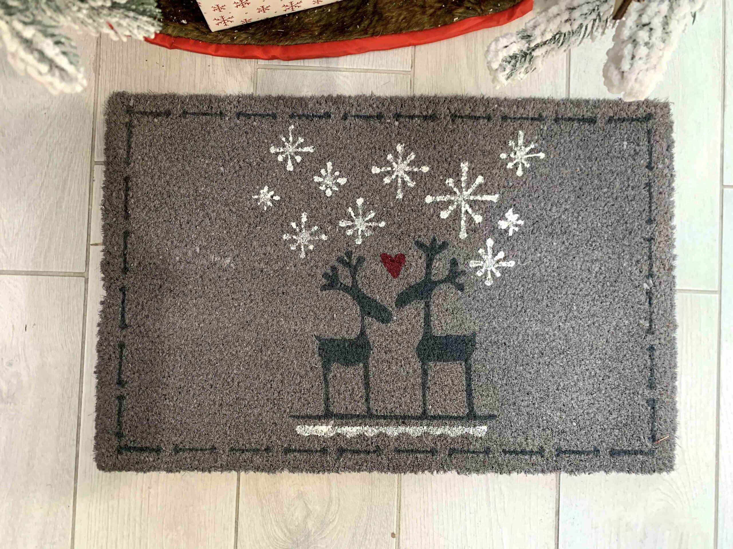 IDEALE PER IL PERIODO INVERNALE, PROPONIAMO BELLISSIMO ZERBINO IN COCCO DECORATO DISPONIBILE IN DUE VARIANTI. MISURA 40X60 CM